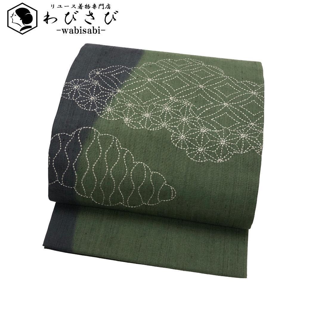> 名古屋帯 刺し子 染分け 紬 七宝 立涌 勝軍色 長尺 O-5328 着物 きもの kimono 和服 和装 中古 リサイクル着物 【送料無料】