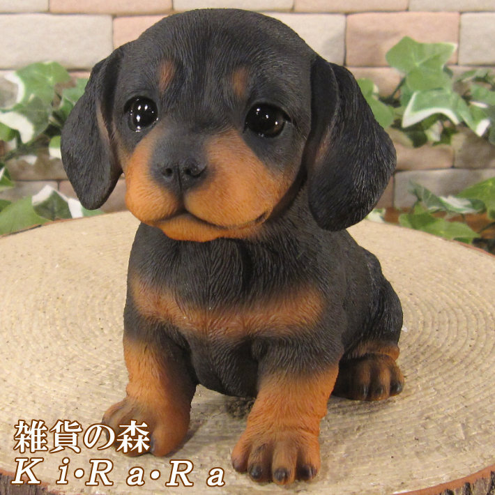 - 置物 動物 可愛い 犬の置物 仔ダックスフント お座り ブラック リアル 店舗 カウンター 装飾 ガーデニング ベランダアート