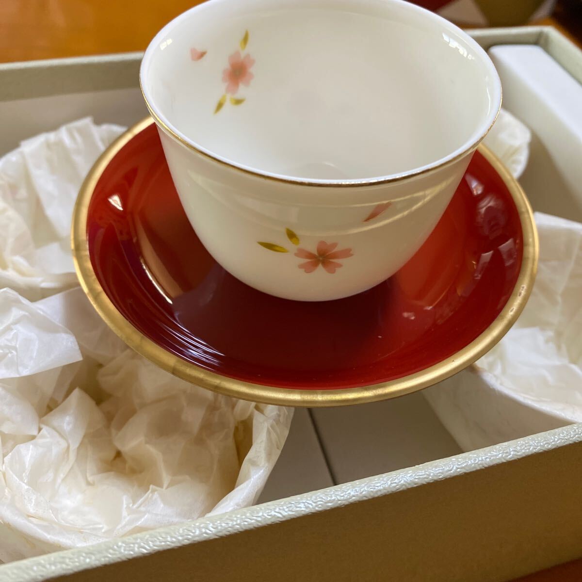 - ★専用箱有り★未使用★Adam&Eve★リボラ湯呑みセット★5客セット★花柄★レトロ★茶托あり★アダムとイヴ、たち吉★