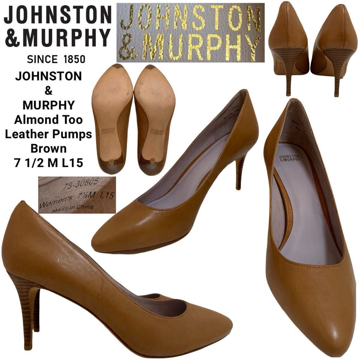 - JOHNSTON&MURPHY ジョンストン&マーフィー 未使用品 アーモンドトゥ レザー パンプス ヒールパンプス ブラウン 7 1/2 M L15 アーカイブ