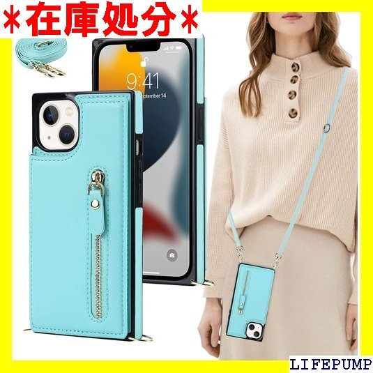- iPhone 15 plus 用 ケース 手帳型 ショ スナー型 ストラップ付き ショルダーケース ライトブルー 1280