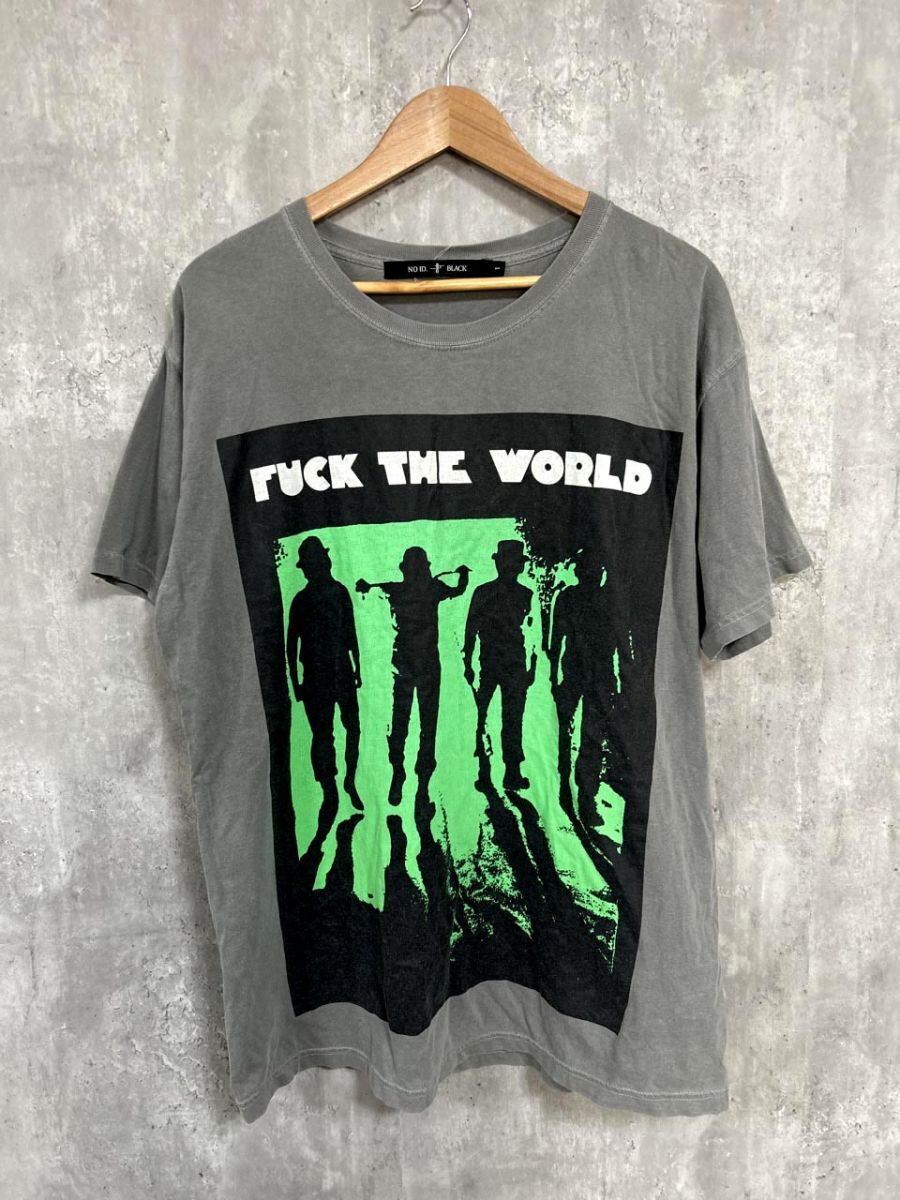 > ネコポスOK NO ID. ウ゛ィンテージ加工 FuckTheWorld プリントC-N-T Tシャツ Tシャツ sizeS/グレー ■◆◎ メンズ