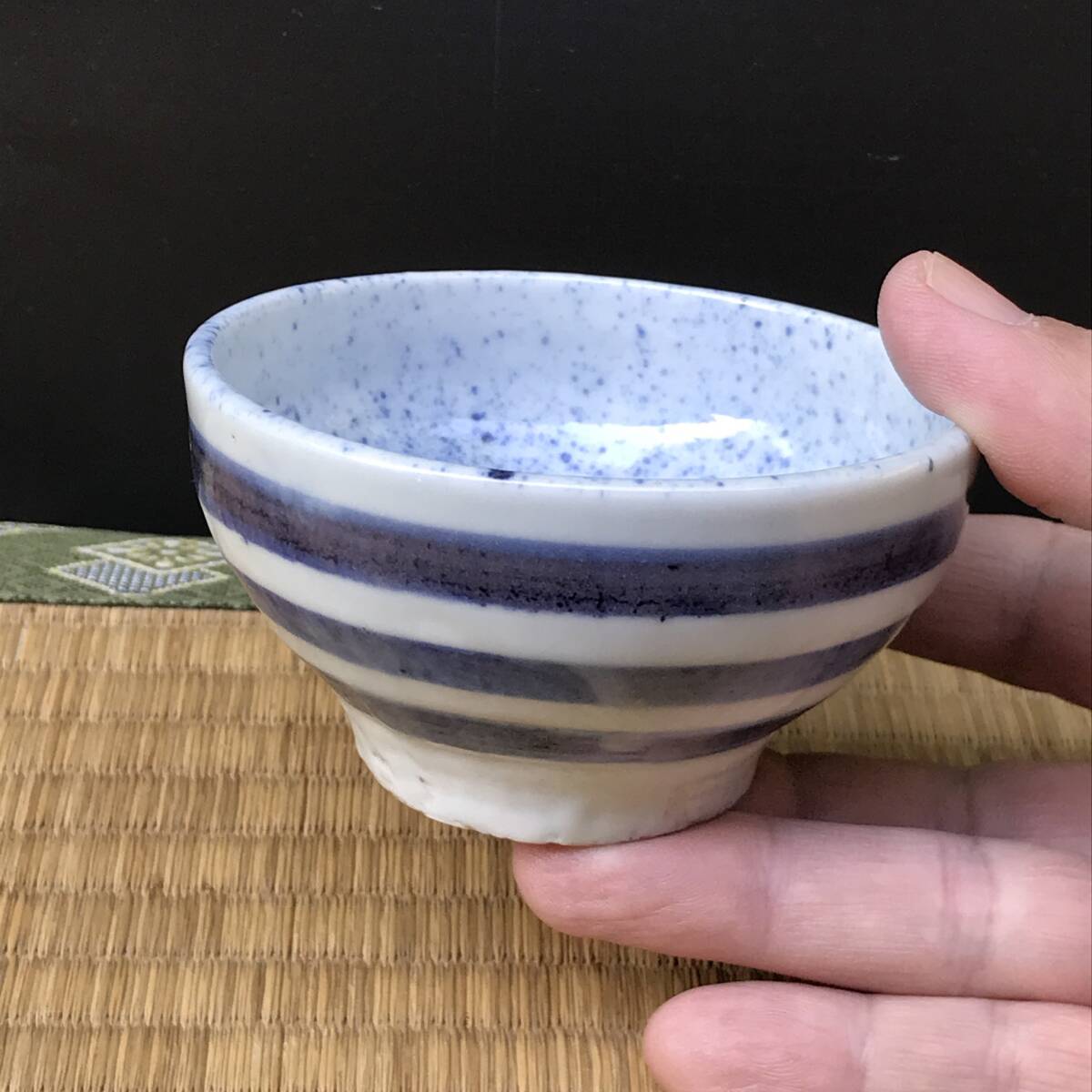 - 吹墨三連横縞紋の盃(米)魯山人星岡窯銘印?ぐい呑み 酒器 猪口 小鉢 杯 珍味入れ(R70501_A)