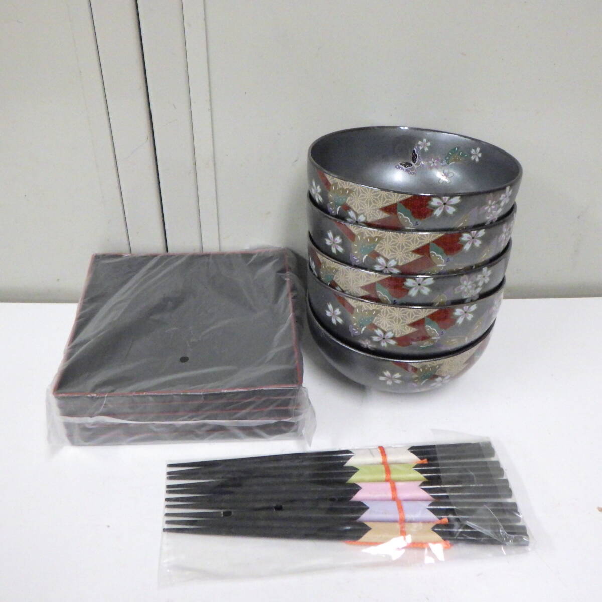 - 瑞陶 小鉢 5客 蝶の都 花文 金彩 蝶文 和食器 お盆 箸