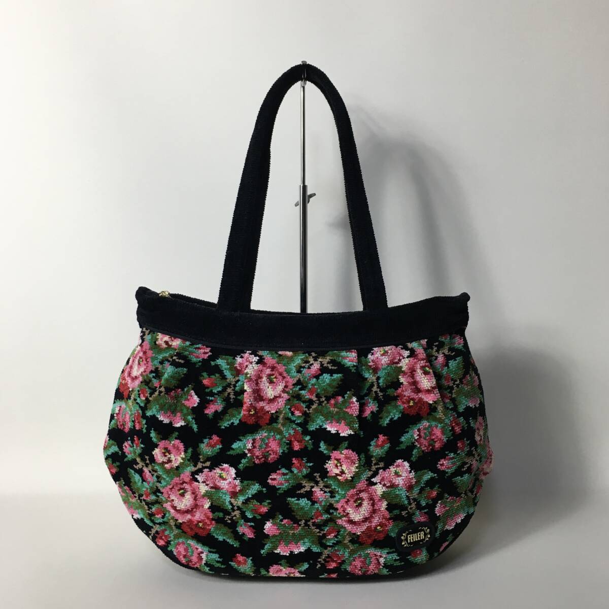 - 76B312|美品|フェイラー ハンドバッグ シュニール織 花柄刺繍