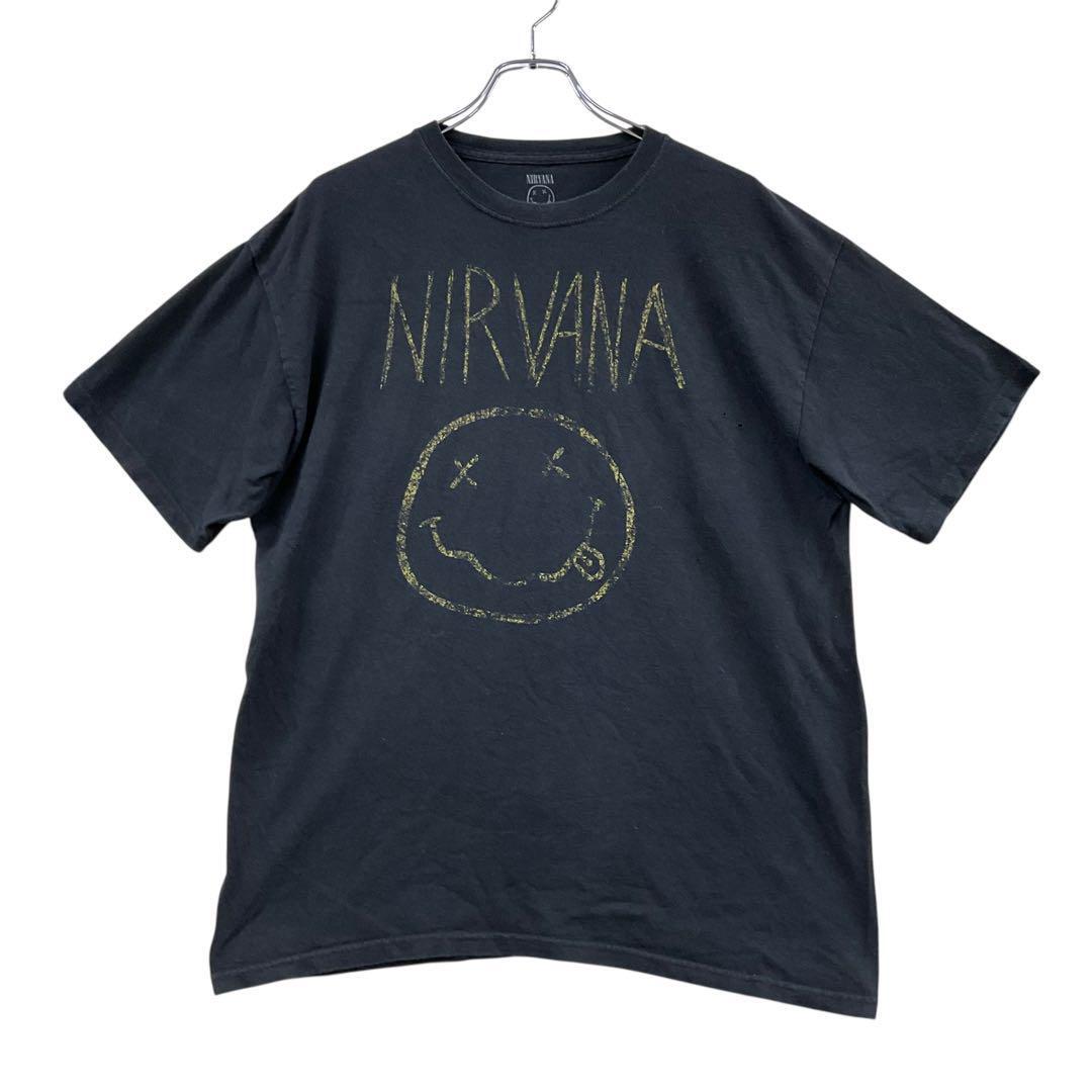 - ニルヴァーナ メンズTシャツ 黒 L スマイル ロゴ ヴィンテージ風【4746】