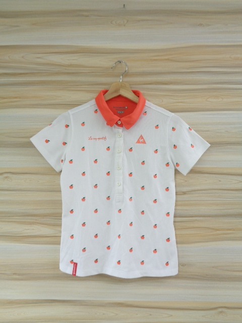 > 3765【本州のみ送料無料】le soq sportif ルコックスポルティフ レディース ポロシャツ ホワイト リンゴ柄 Mサイズ