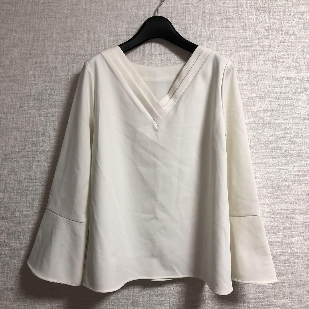 - Mila Owen ミラオーウェン フレアスリーブデザインブラウスホワイトシャツ ベルスリーブ 変形 Vネック 裏あり 裏地 透け防止 フォーマル