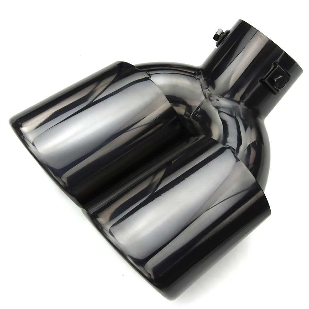 - 「脱落防止ワイヤー付き」マフラーカッター 下向き 2本出し 約36mm~51mmのマフラー適用 外装 アクセサリー ステンレス製 ブラック