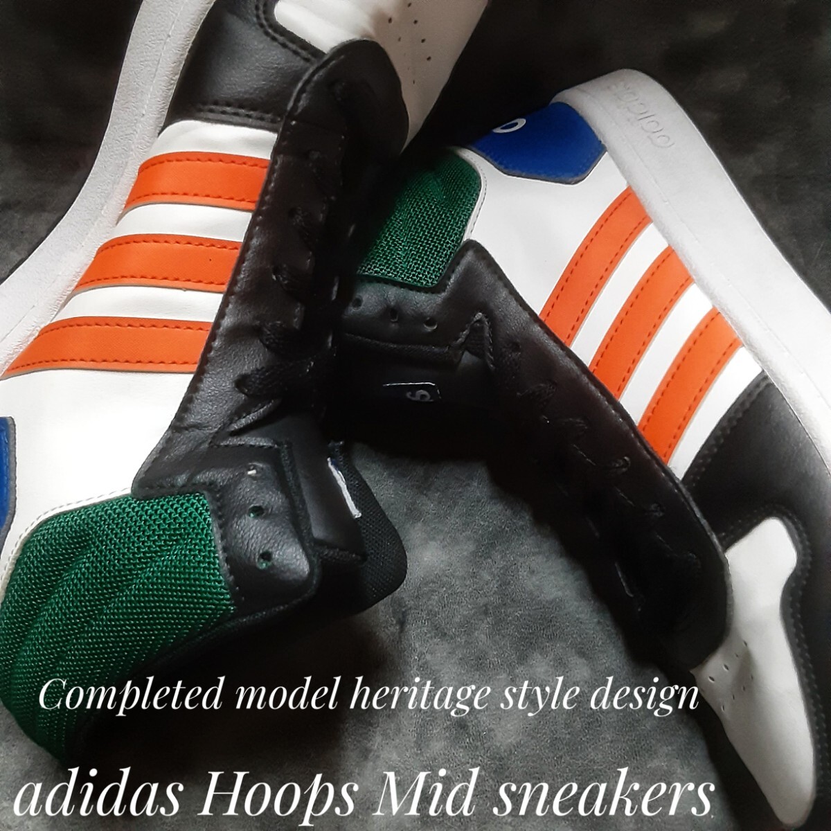 - 最値!希少21年製!シーサイドカラー!完成型ヘリテージスタイル!アディダス フープス ミッド高級シンセレザー スニーカー!白青橙色黒緑 26cm
