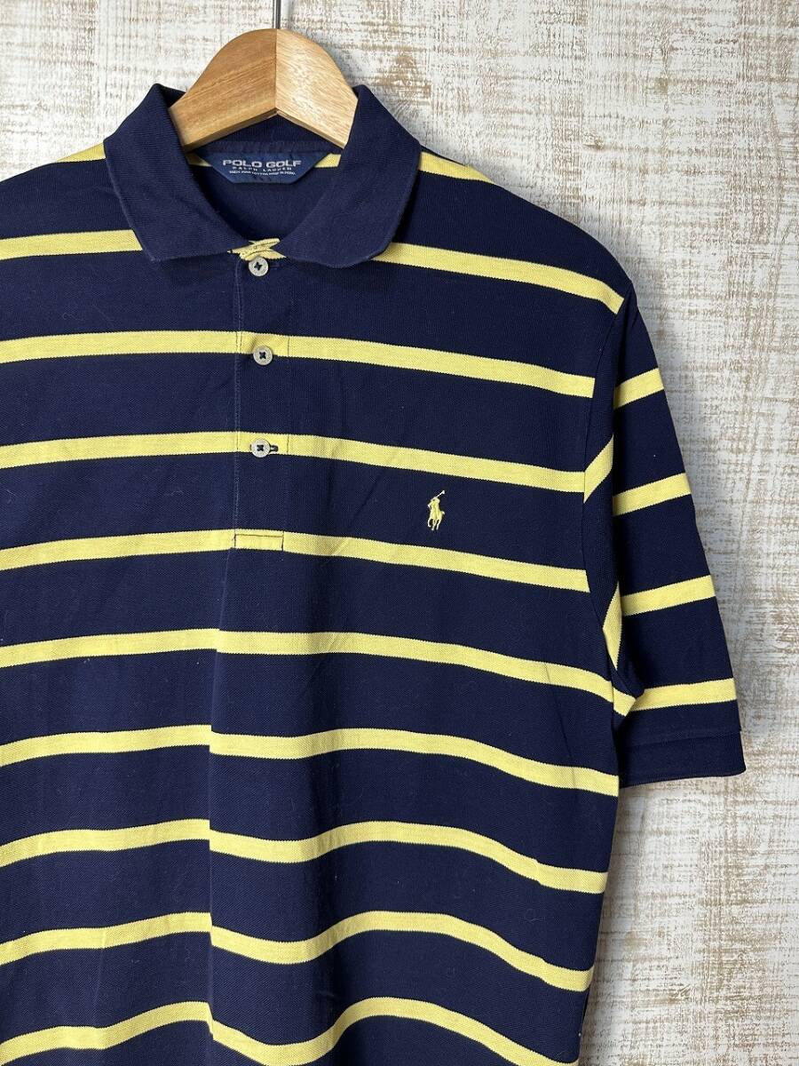 - ☆US古着 POLO Ralph Lauren GOLF ラルフローレン ポロシャツ ボーダー ゴルフ ネイビー紺×イエロー黄【S】鹿の子コットン ◆5043◆