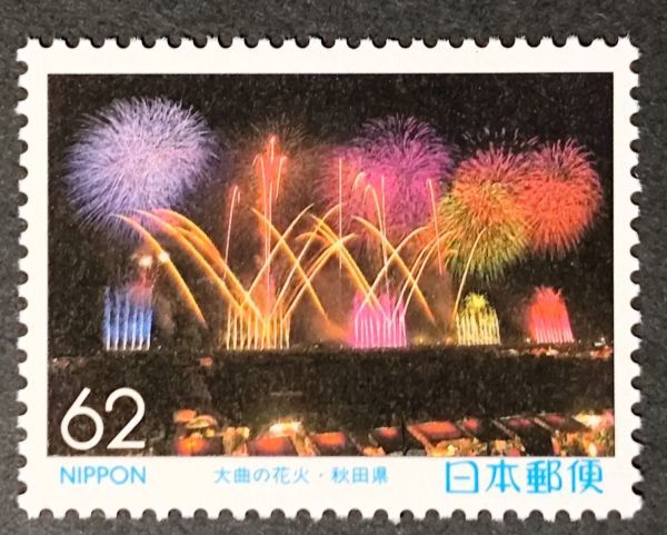 - [25071708]【ふるさと切手・秋田県】単片「大曲の花火」62円 1990年発行 美品