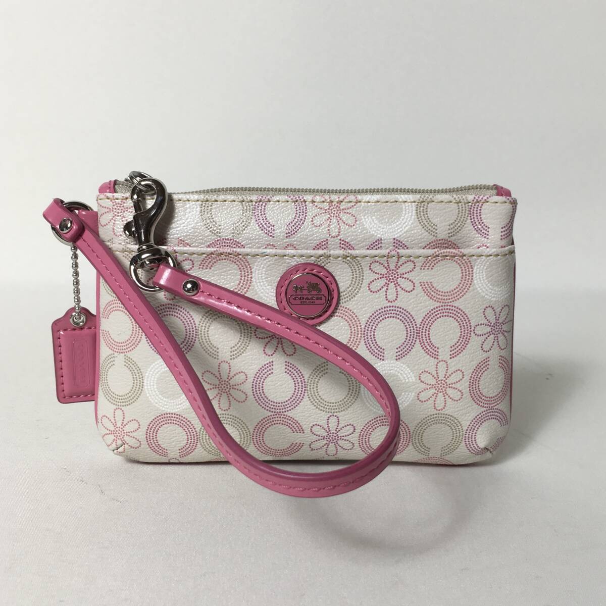 - 76B324|美品|コーチ オプアート マルチポーチ ピンク 花柄