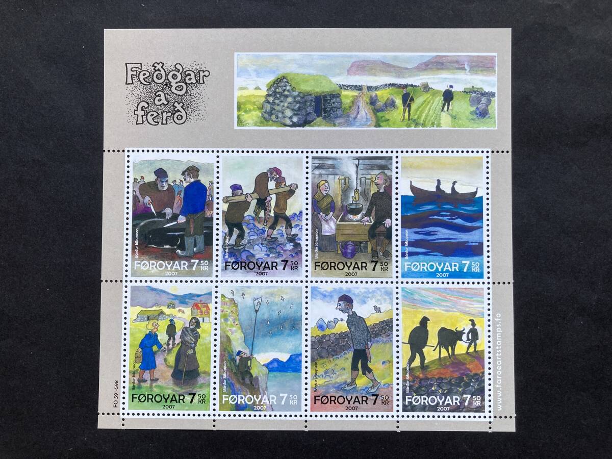 - 外国切手: フェロー諸島切手 「ヘスイン・ブル没後20年〈The Old Man and His Sons〉」(フェロー諸島の作家) 8種m/s 未使用
