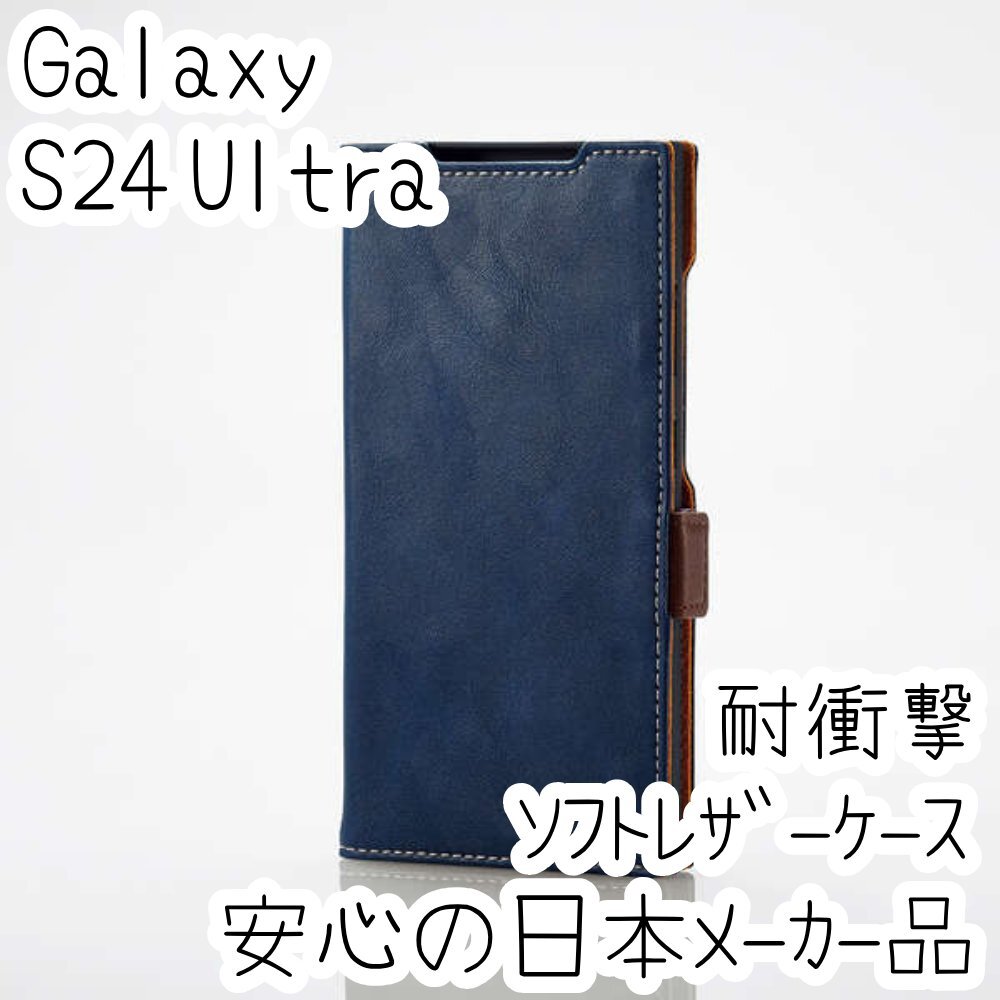 - エレコム Galaxy S24 Ultra 手帳型ケース カバー ネイビー マグネット ストラップホール 薄型 磁石 カードポケット SC-52E SCG26 558