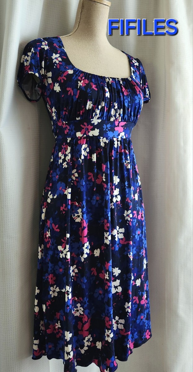 - 大変美品 FIFILES 可愛いジャージワンピース 花柄 ネイビー