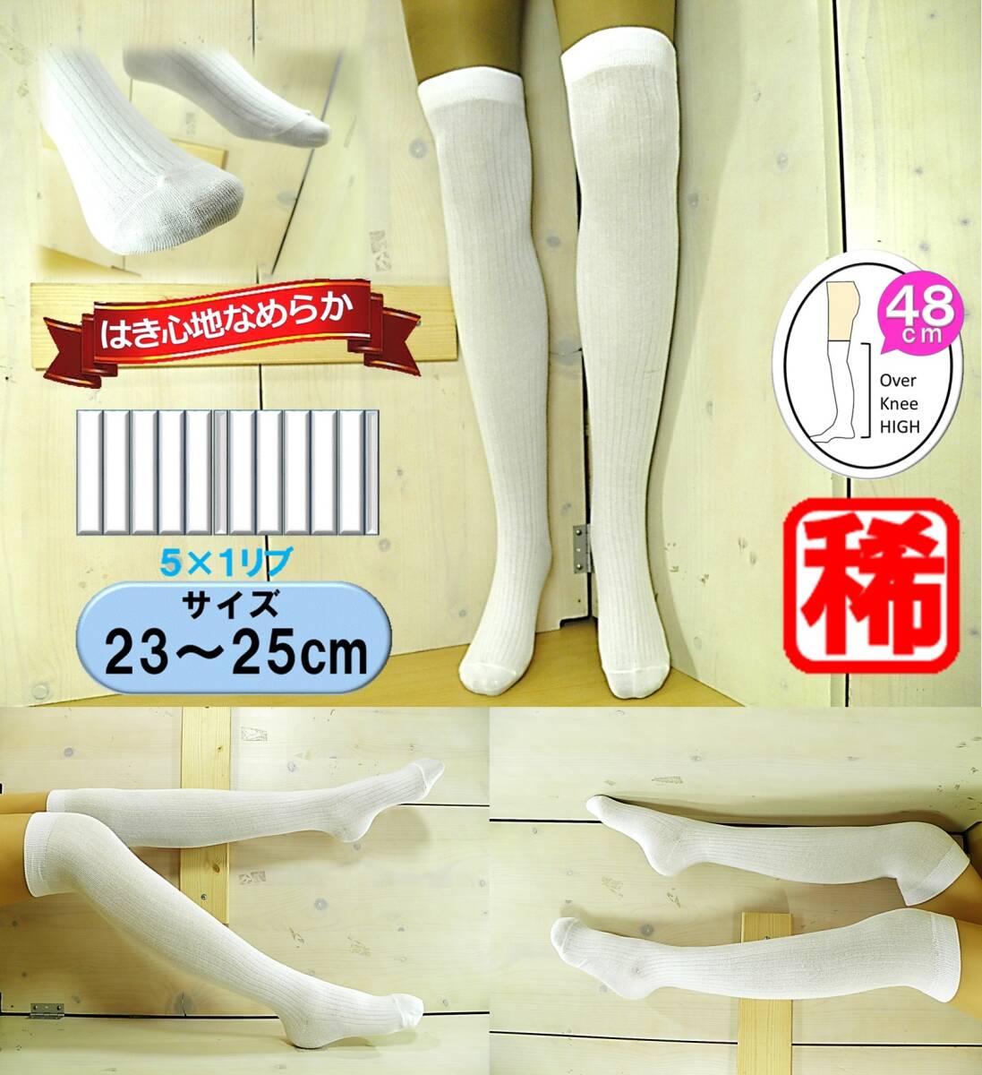 > 【レッグウェア★未使用品】太リブ◆5×1リブ◆白リブ ニーハイソックス◆オーバーニー◆コスプレ◆メイド◆アイドル◆23-25cm◆48cm丈◆ST