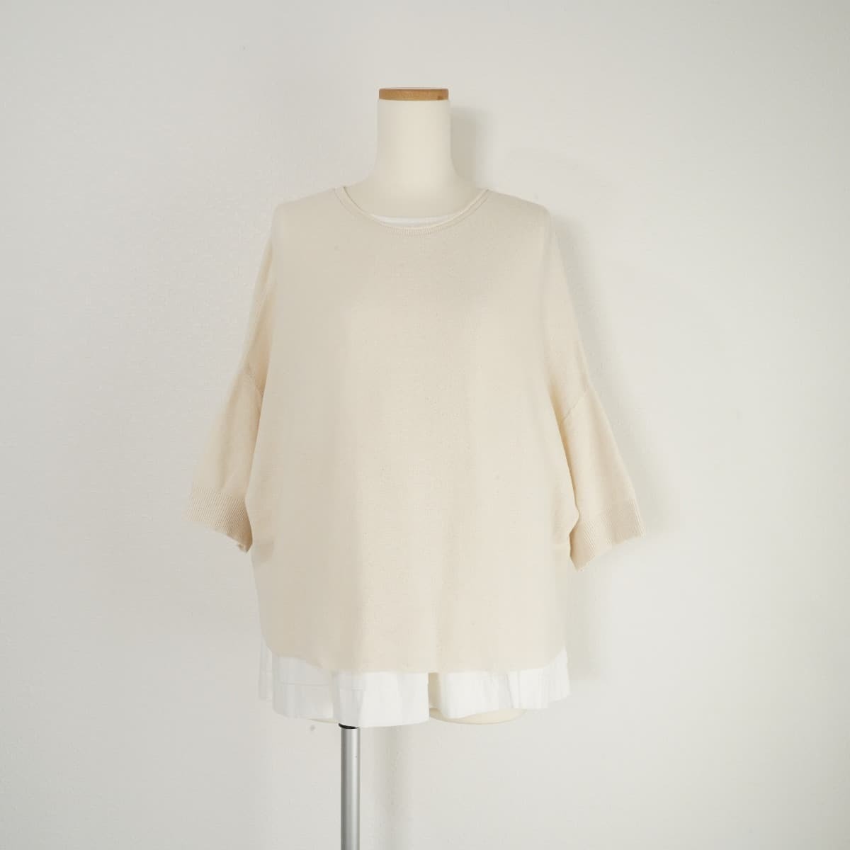 コメント:単体でも使える着回し力の高いセットアイテム。バランスの良いレイヤードスタイルが完成するカーディガンとノースリーブブラウスのセット。ゆったりとした身幅に肩を落としたドロップショルダーに、コットン100%の柔らかいニットカーディガンは薄手なので、紫外線除けや冷房対策にも使える万能アイテム。前後着用することができます。インナーのノースリーブは胸元の切り替えにギャザーを施しふんわり広がるフェミニンなデザインです。