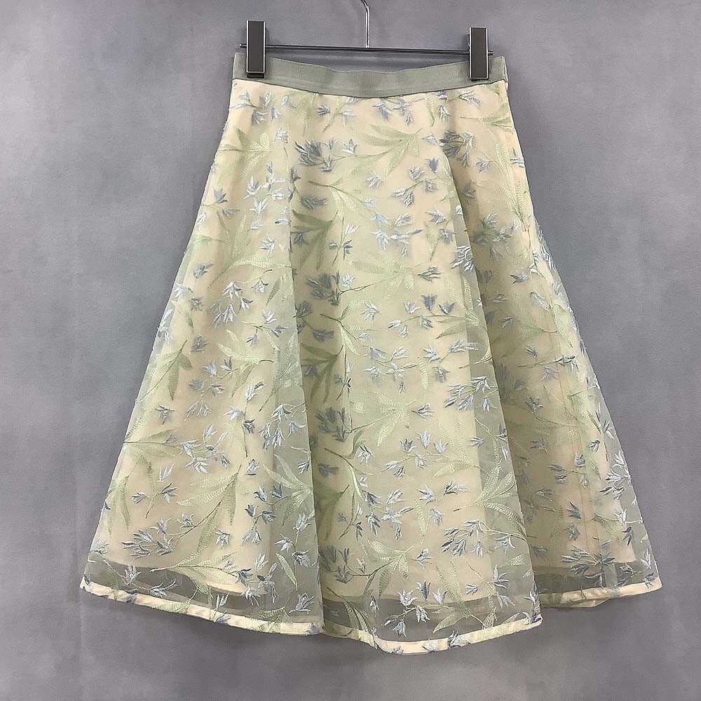 > STRAWBERRY-FIELDS ストロベリーフィールズ スカート ひざ丈 フレア グリーン系 2 / 小型便OK [D3994]