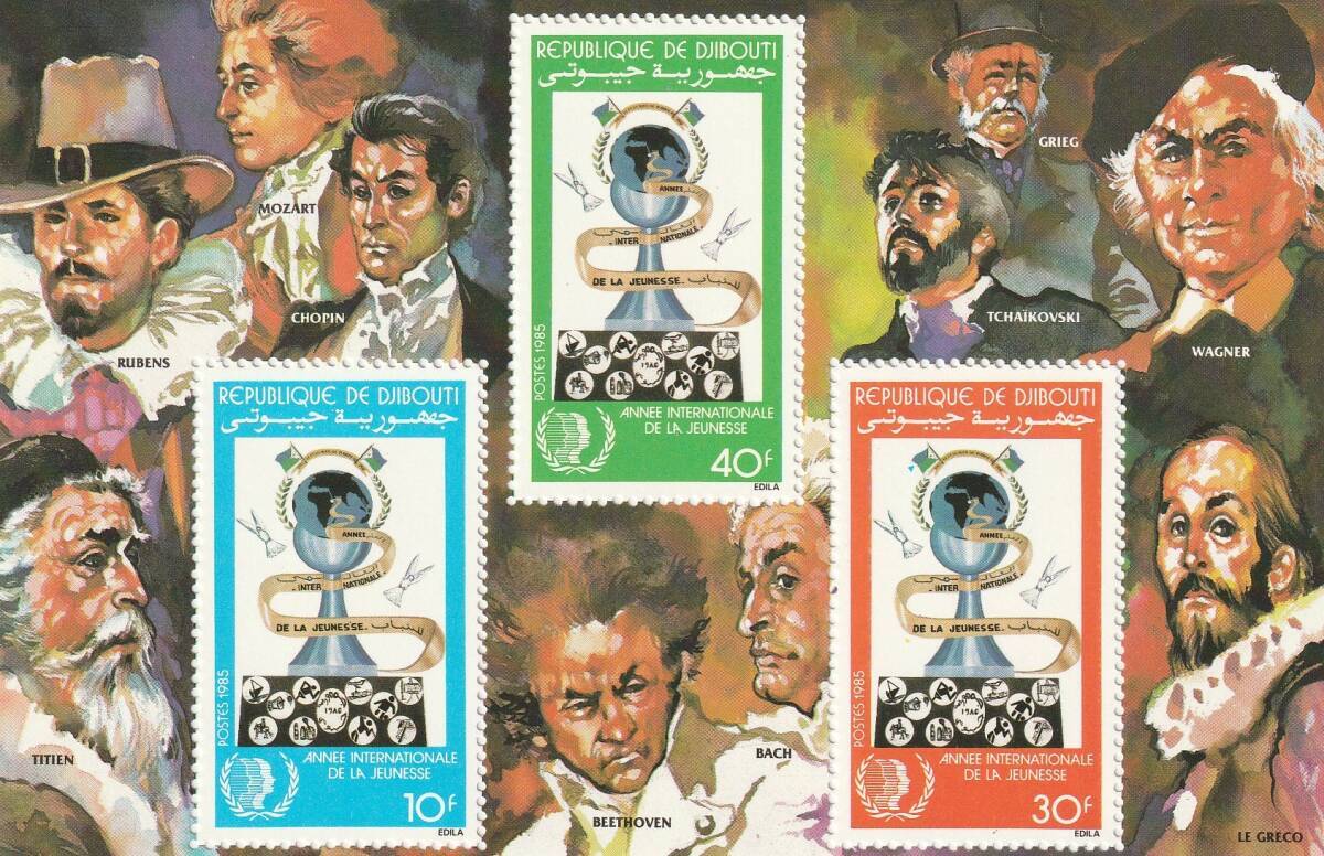 - (ジブチ)1985年世界青年イヤー小型シート、マイケルカタログ評価25ユーロ(海外より発送、説明欄参照)