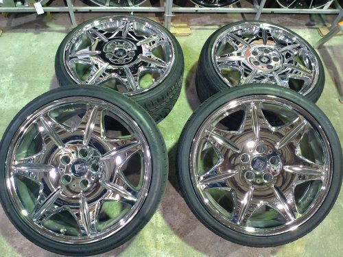 - Ж【小樽店】店頭引取歓迎♪セド、グロ、クラウン等FRへ WORK LS207MONOメッキ前後異サイズ【8.5J×19+40 9.5J×20+38 114/5H】タイヤ付