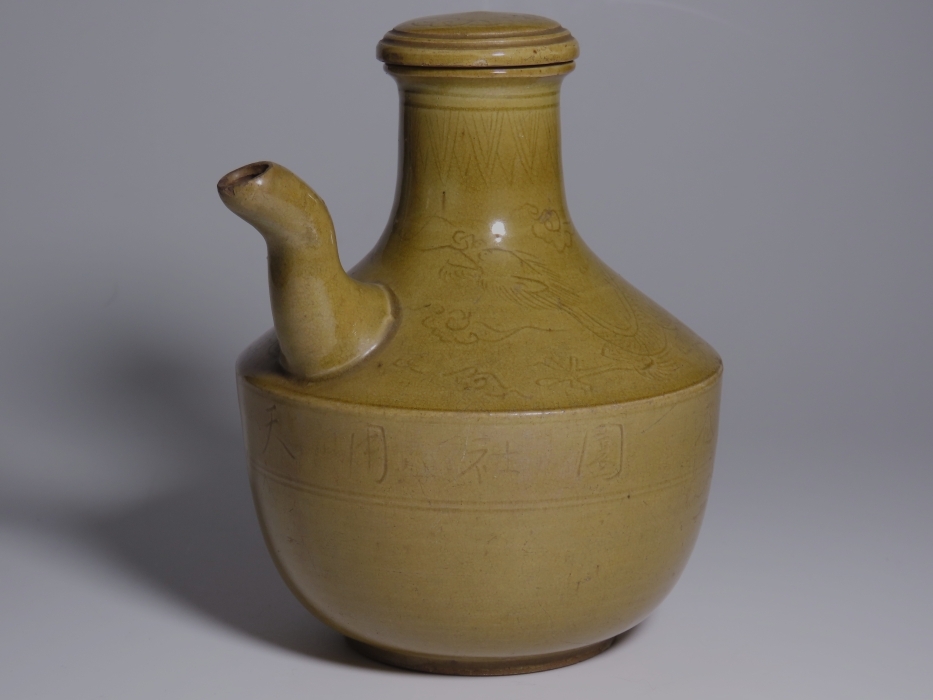 - 中国の陶器.黄色釉.水差.水注.汚れや虫食いなどありますが気になる傷はありません。