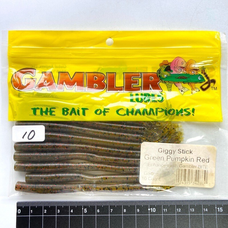 - 813703 新品 ギャンブラー ジギースティック 10本 #グリーンパンプキンレッド GAMBLER Giggy Stick アクションエアテール風の中空ワーム
