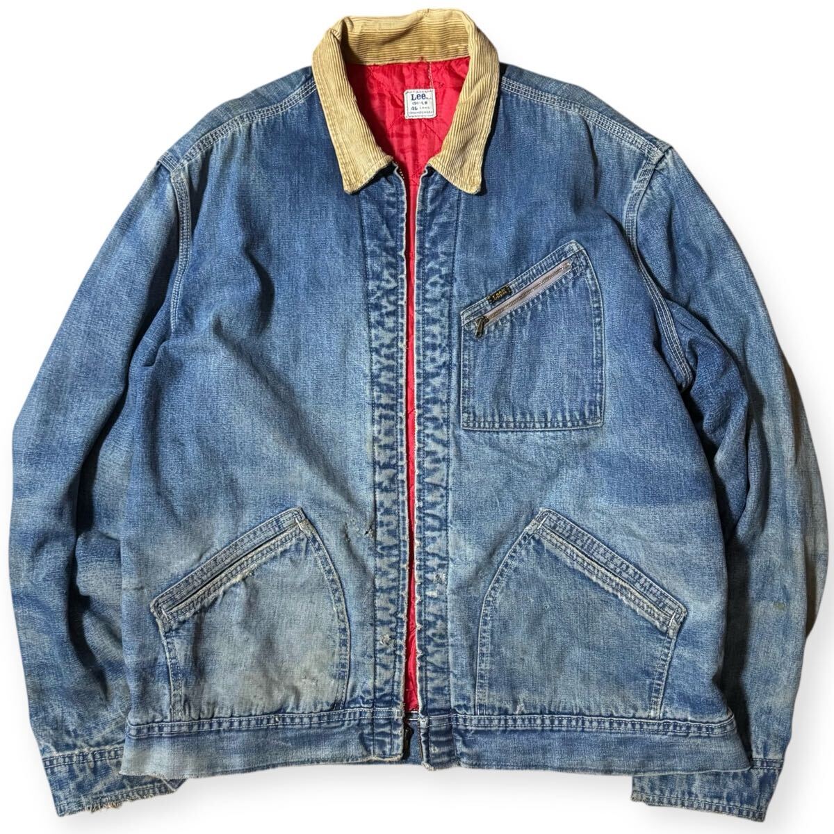 - 稀少サイズ46 雰囲気系 Lee 60s USA製 ビンテージ 191-LB デニムワークジャケット 襟コーズ 91-B 襤褸 ボロ ジッパー破損