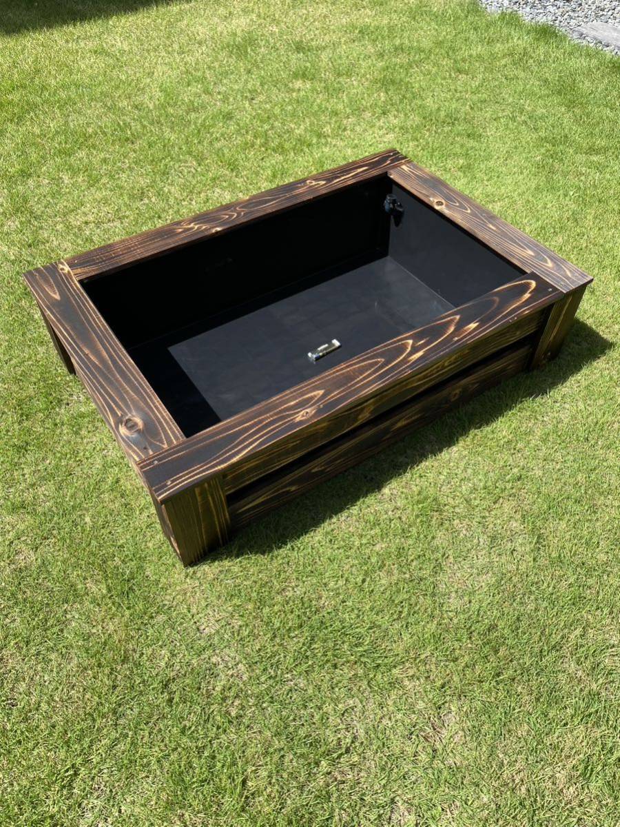 - 《木枠カバー Bタイプ 85L》 ビオトープ用 オーバフロー対策済み トロ船 約85L 付き 焼杉枠 メダカ飼育 外内兼用