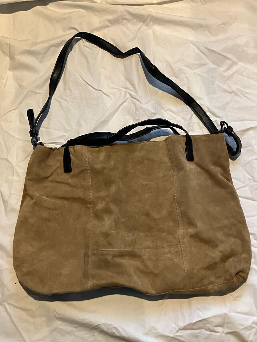 - ZARA スエード風 ショルダーバッグ ベージュ×ブラック トートバッグ
