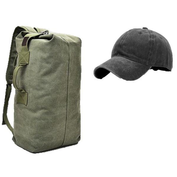 > ミリタリー バッグ ドラム バッグ 35L 「アーミーグリーン」 コットン キャップ 付き ダッフル 帆布 リュックサック バックパック 大容量
