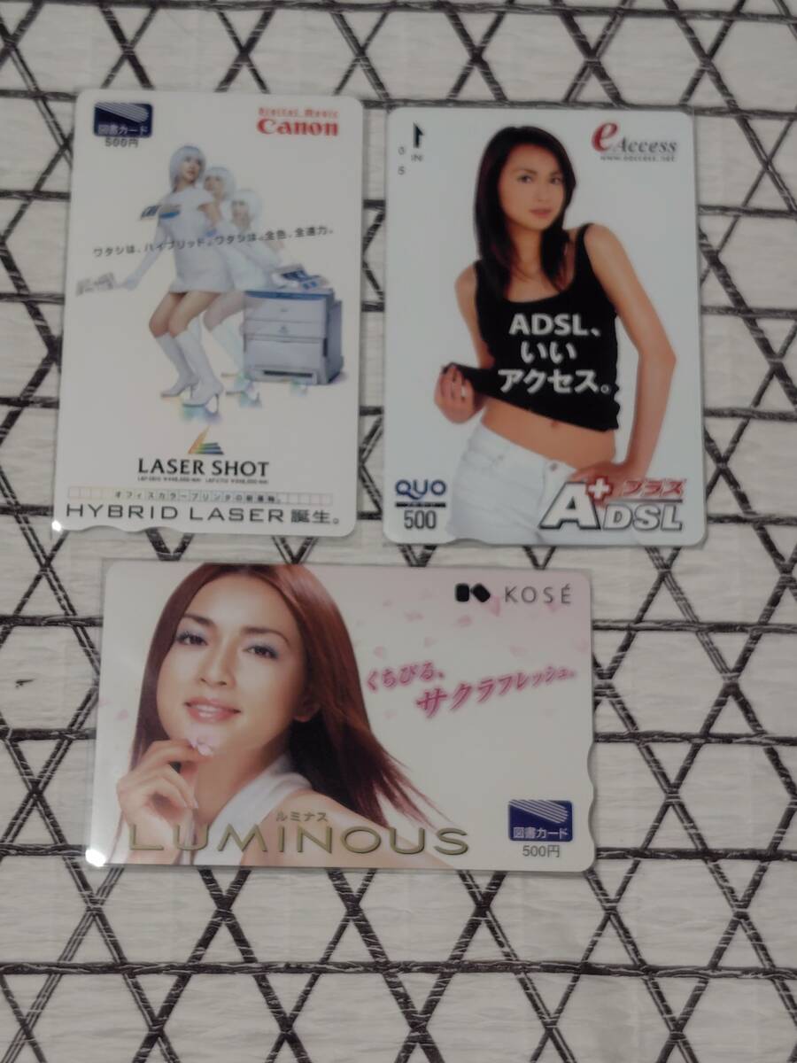 > 送料無料*長谷川京子*QUOカード*図書カード*まとめて*3枚*レア*貴重*セクシー*へそ出し*非売品*コーセー*キャノン*クオカード*入手困難