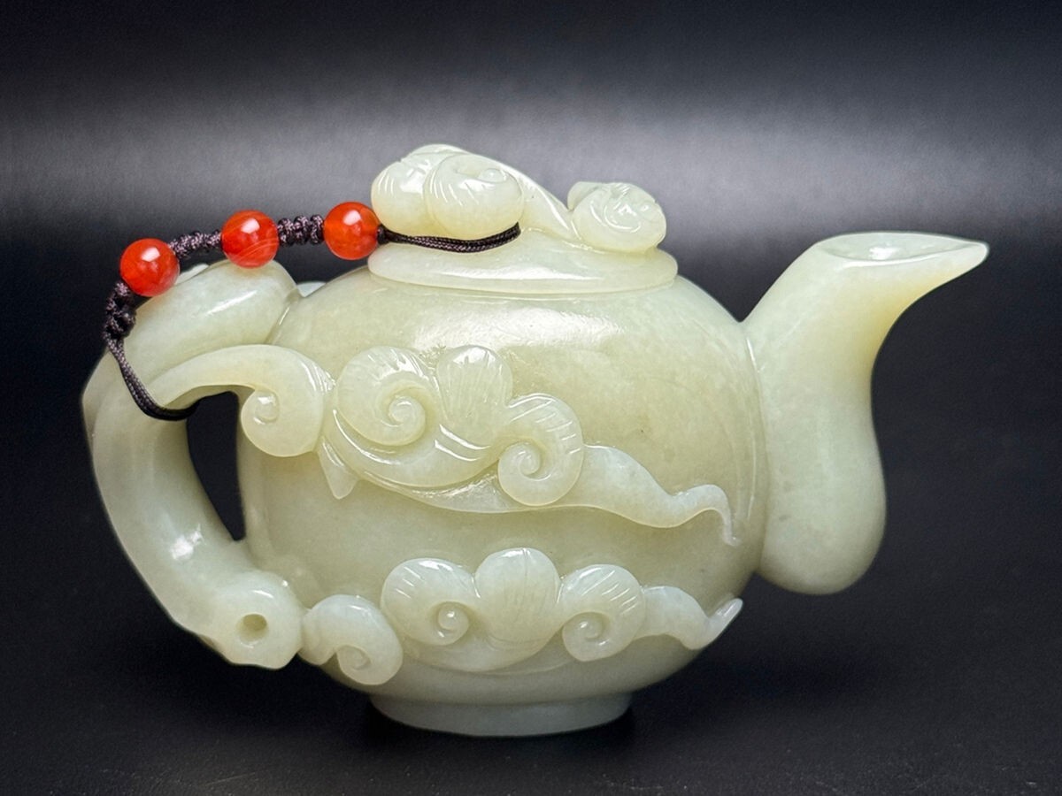 - 「時代物 和田玉 彫り 如意吉祥 玉壺」極細工 擺件 中国古賞物 古美術 旧蔵出