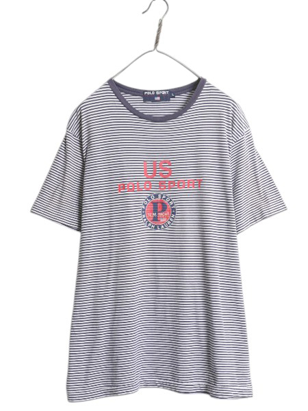 > 90s ポロスポーツ ラルフローレン ボーダー プリント 半袖 Tシャツ メンズ L / オールド ポロ カットソー リンガー シングルステッチ 紺 白