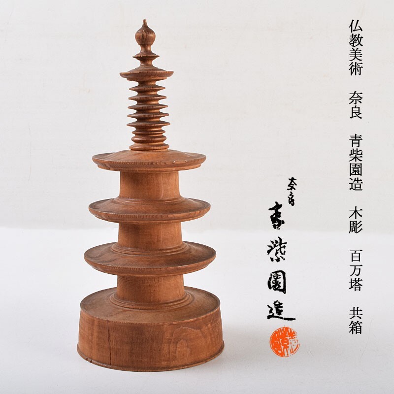 - 仏教美術 奈良 青柴園造 木彫 百万塔 共箱 ORKQ
