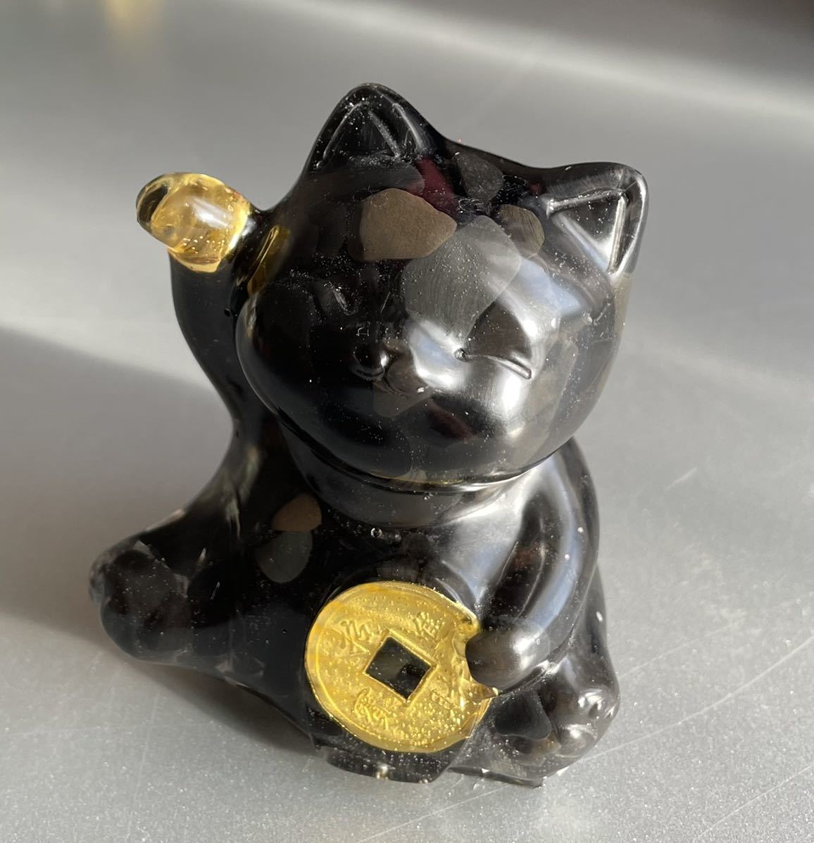 - 招き猫 オルゴナイト オブシディアン パワーストーン ラッキー 開運 幸運 置物インテリア 天然石 魔除 お守 風水晶 ブラック 黒曜石 雑貨