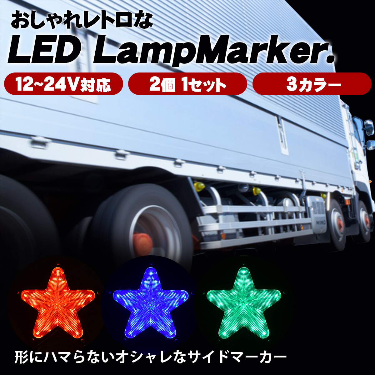 > マーカー ライト デコトラ シグナル 車 トラック 星型 ランプ アクセサリー レトロ イルミネーション バス 船 電飾 グリーン 2個セット