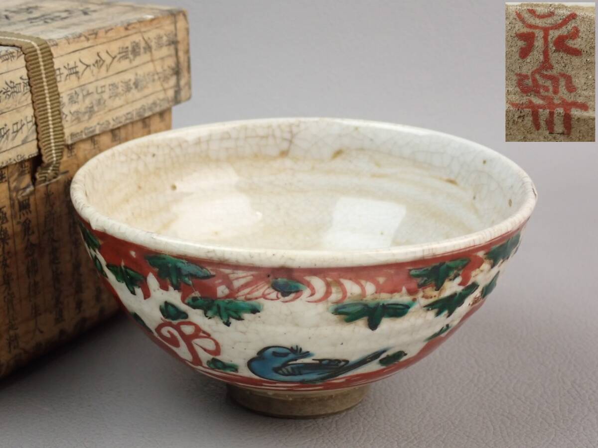 - 【骨董・茶道具】★永楽銘★★赤絵鳥文茶碗 gm074tb22