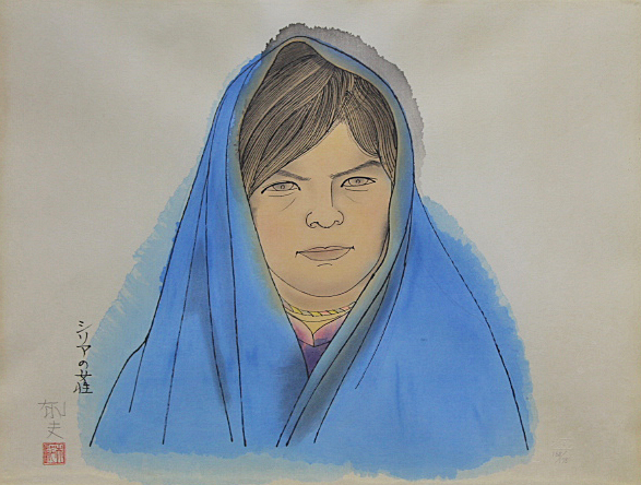 - ■☆平山郁夫 【シルクロード・シリーズ シリアの女性】 三越取扱い 1978年 木版画 直筆サイン 印章有り エディション有り