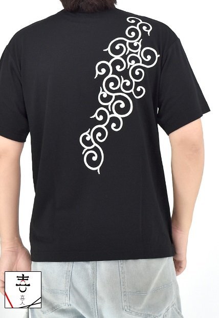 > まるめん唐草半袖Tシャツ◆喜人 ブラック XXLサイズ KJ-52015 和柄 和風 吸汗速乾 ドライ きじん