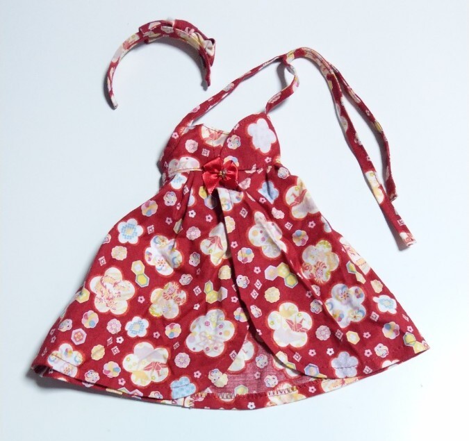 > SDM MSD 1/4サイズ ドール服 お洋服 アウトフィット ワンピース 2点セット 和柄 和風 赤