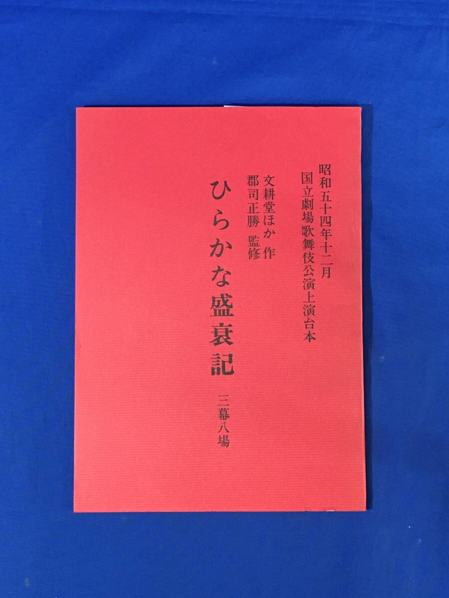- AH350イ●昭和54年12月 国立劇場歌舞伎公演上演台本 「ひらかな盛衰記」 文耕堂ほか作 郡司正勝監修