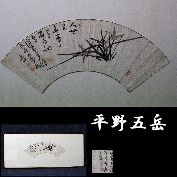 - 【真作】 平野五岳 扇面図 画讃 書 水墨 豊後南画 大分の画家 真宗大谷派専念寺 D982