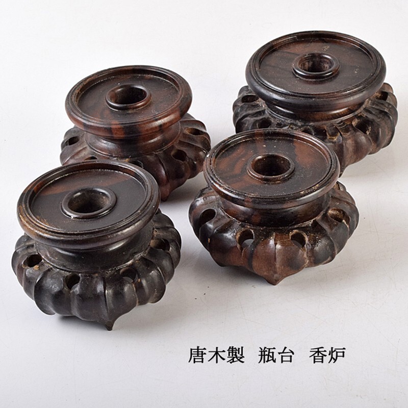 - 中国美術 唐木製 瓶台 香炉 4点まとめて 古玩 VCGR