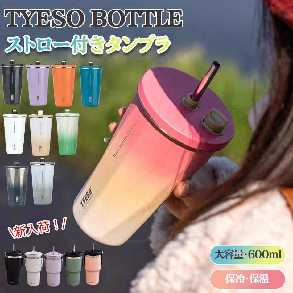 - 『オレンジ限定販売』TYESO ストロー付きタンブラーストロー タンブラー600ml ステンレス大容量こぼれない蓋付きおしゃれ収納水筒qs-053