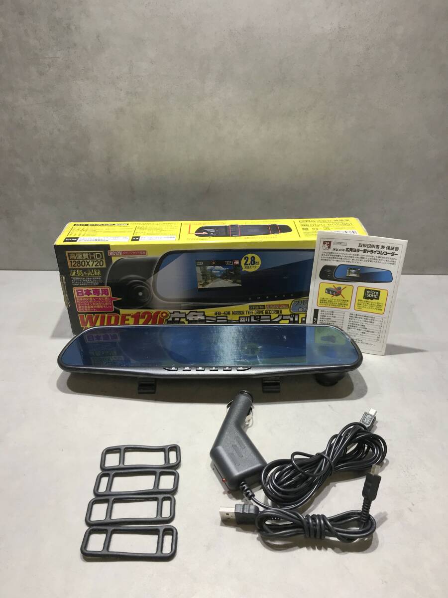 > 広角ミラー型ドライブレコーダー【S12740◎】2.8型液晶モニター シガーソケット IFD-438【通電のみ】250724