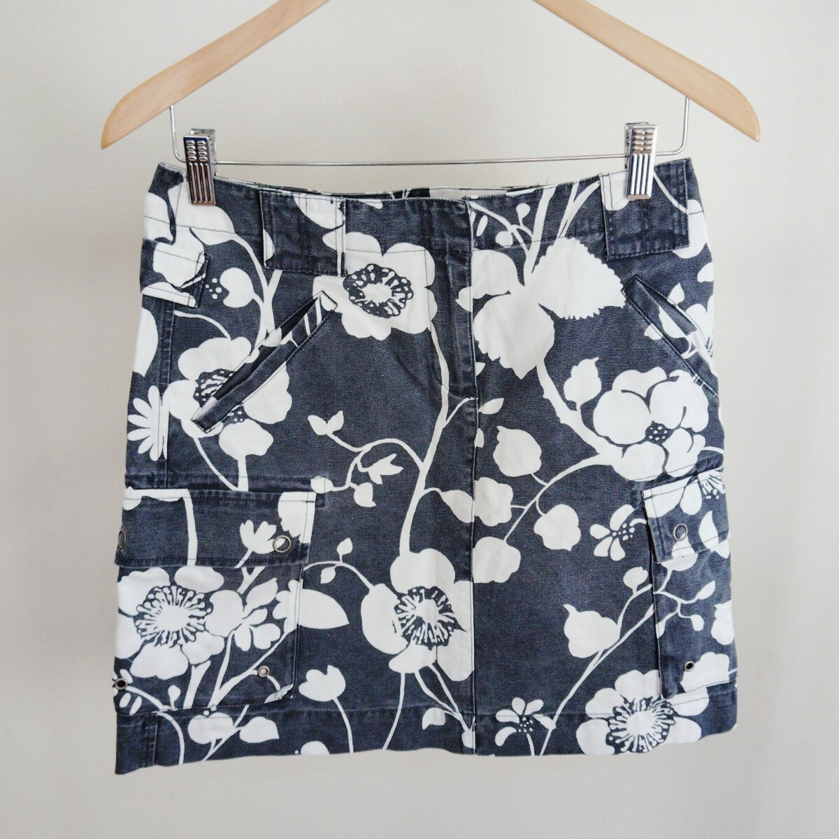 - 0725/2/J.CREW レディース スカート ミニ丈 総柄 花柄 ブラックデニム