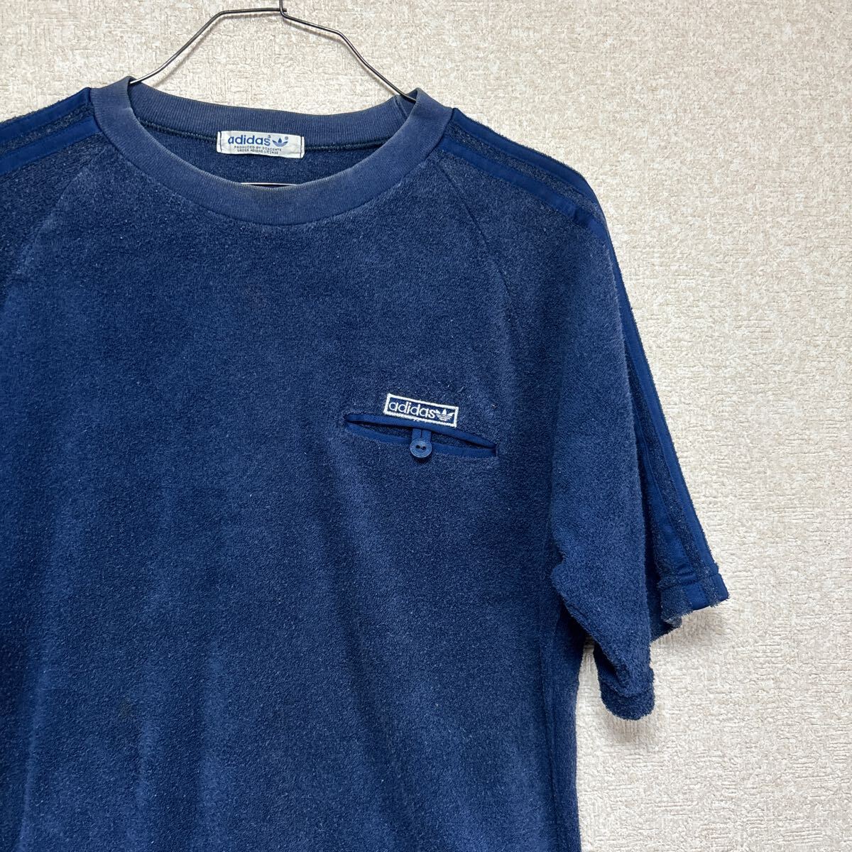 - 80s 【DESCENTE製】 OLD adidas アディダス タオル生地 ビンテージ tシャツ ADS-143 Lサイズ メンズMサイズ相当