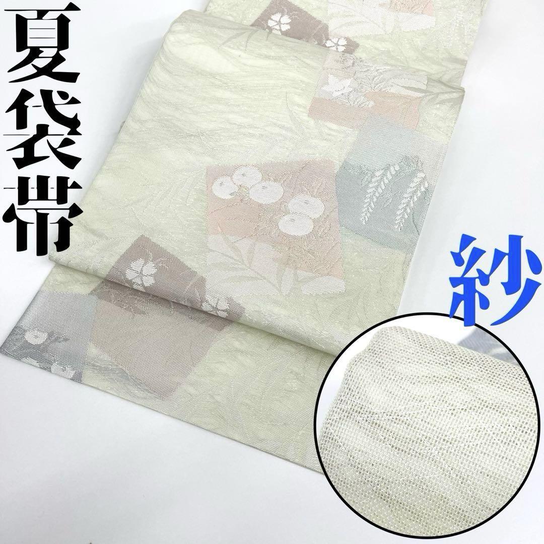 > 【着物と帯 時流】SF25832◆正絹 夏袋帯◆紗 淡黄緑 帯芯入 色紙 美品