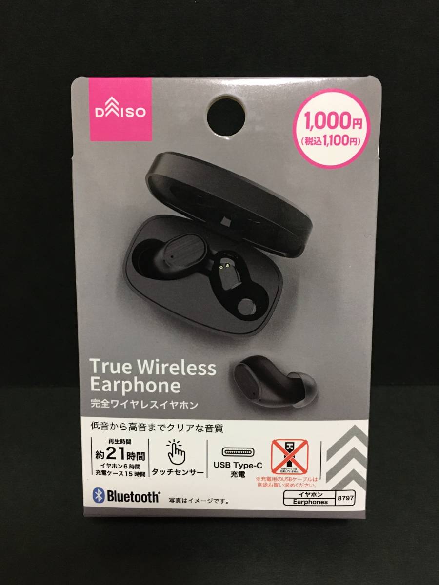 - DAISO/ダイソー 完全ワイヤレスイヤホン☆彡 ブラック☆ Bluetooth対応 最大再生約21H タッチセンサー Type-C充電 新品未開封品